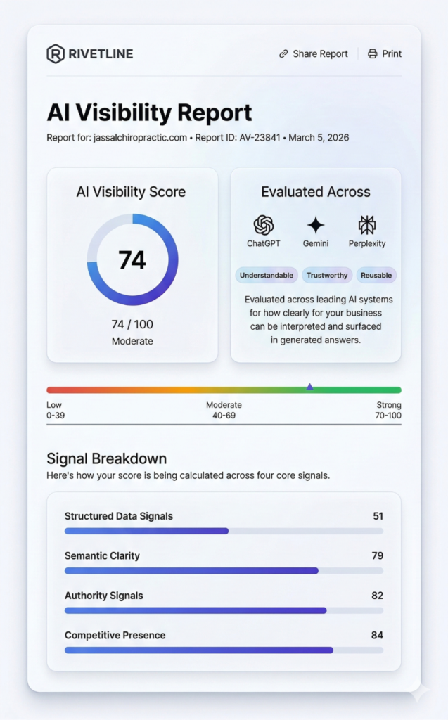 Run an automated scan to evaluate your site’s structure, schema implementation, and readiness to appear in AI-generated answers.